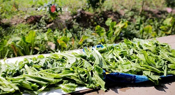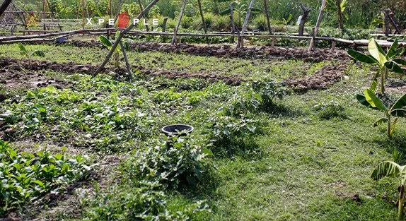 โซนด้านหน้ามีการปลูกกล้วยพันธุ์โบราณกว่า 7 ชนิด มีต้นคะน้าเม็กซิโกที่สามารถใช้แทนผงชูรสได้ ถัดเข้ามาข้างในเป็นพวกผักใบอ่อนตามท้องตลาดตั้งแต่คะน้า กวางตุ้ง ขึ้นฉ่าย ผักชี โซนท้ายสวนก็จะเป็นแปลงข้าวโพด กองปุ๋ยหมักชีวภาพ และสารไล่แมลงจากธรรมชาติ กระบวนการทั้งหมดจะทำเป็นระบบหมุนเวียนนำเศษพืชผักกลับมาทำเป็นปุ๋ยชีวภาพใช้ในสวนต่อไป