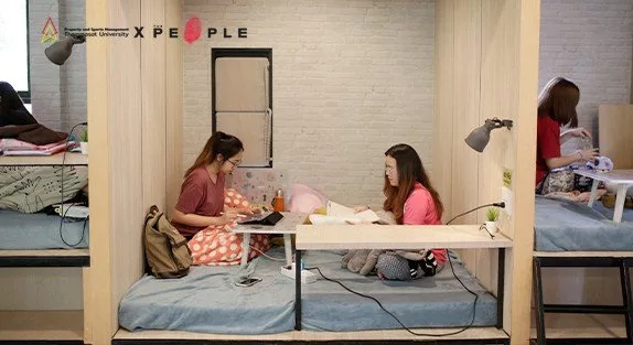 ถ้าใครที่ไม่อยากส่งเสียงรบกวนเพื่อน ๆ ที่เตรียมตัวสอบ ก็สามารถใช้ห้องติวกลุ่มได้เช่นกัน ที่นี่มีทุกอย่างเหมือนกับ Co-Working Space เจ๋ง ๆ ในกรุงเทพฯ ทั้งยังแบ่งพื้นที่ Naplap สำหรับใครที่ชอบนั่งนอนอ่านหนังสือ พักสายตาจากการโหมฝึกวิชามาทั้งวัน มางีบเบา ๆ เพื่อเติมพลัง ถัดมาเราจะเห็นโซนสำหรับคนที่รักสันโดษ ต้องการสมาธิสูงในการอ่าน