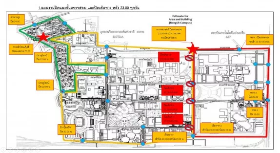 แจ้งปิดเส้นทางภายในมหาวิทยาลัยธรรมศาสตร์ศูนย์รังสิตเพื่อกวดขันด้านความปลอดภัย